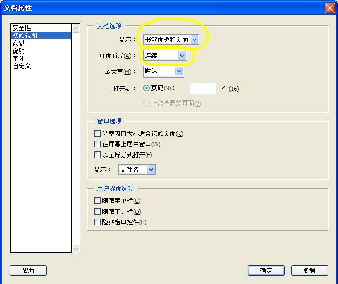 ?設(shè)置:“文件—>文檔屬性”,顯示選擇“書簽面板和頁(yè)面“,頁(yè)面布局選擇“連續(xù)”。
